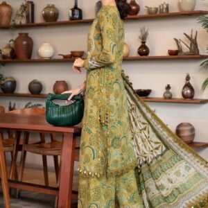 CO 494 Digital Printed 3Pc Unstitched Lawn Suit With Digital Printed Monar Dupatta