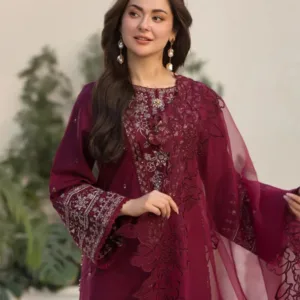 QL-2685 3 Piece -Unstitched Fully Embroidered Lawn Fabric Embroidered Organza Dupatta