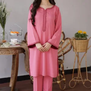 Dhanak Stuff Neckline Embroidered Shirt