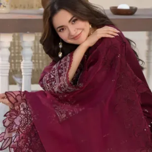 Be the first to review “QL-2685 3 Piece -Unstitched Fully Embroidered Lawn Fabric Embroidered Organza Dupatta”
