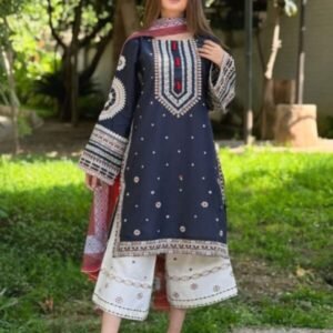 ● Unstitched Winter Collection Dhanak Stuff 3 Piece Full Embroidered Suit With Printed Wool Shawl With Extra Embroidered Patches.