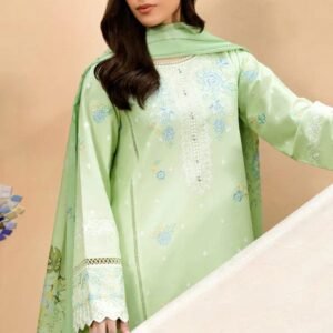 ZS-2635 Lawn Unstitched 3pc Embroidered Suit With Cotton Net Embroidered Dupatta